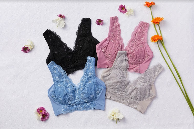 くつろぎ育乳ブラは逆にレース遣いでおしゃれ、お泊りにも使えそう。